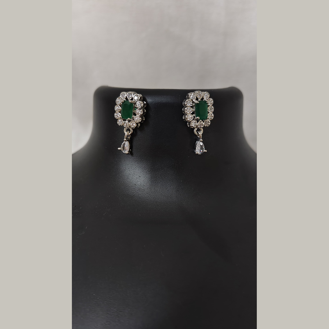 - Earrings: Matching green stone studs with CZ halo and teardrop drop