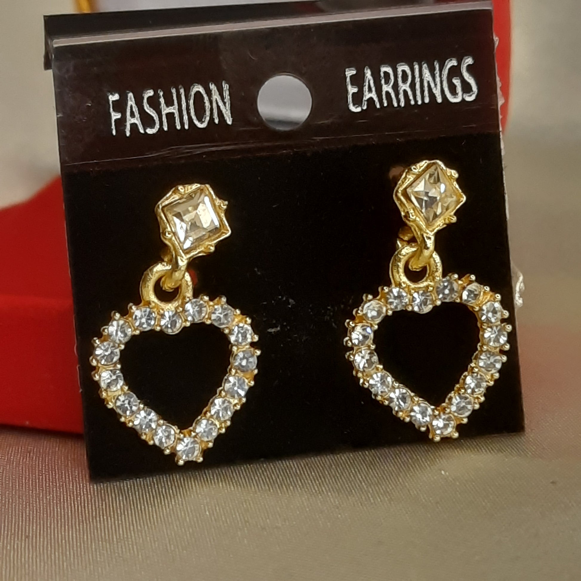 These charming Amour Dangle Earrings offer a brilliant, romantic sparkle. Each earring features a bright cushion-cut or square solitaire stud, from which dangles an open heart-shaped hoop. The heart is completely paved with small, dazzling white simulated stones set in a warm gold-toned finish. Their delicate size and classic motif make them a perfect symbol of affection.