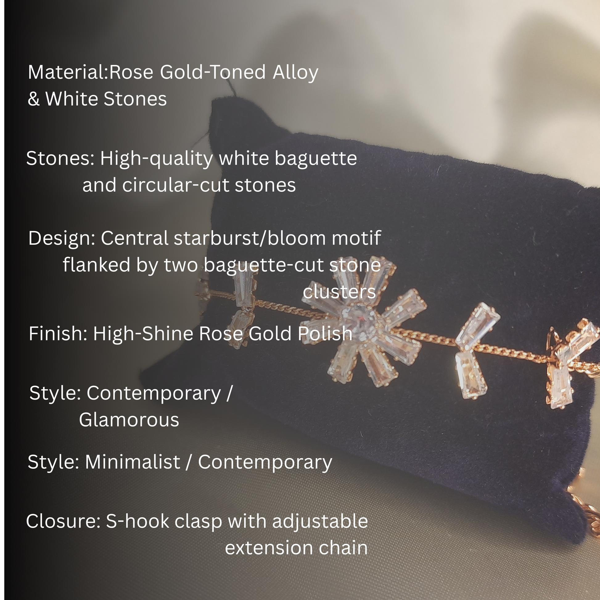 - Material: Rose Gold-Toned Alloy & White Stones